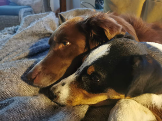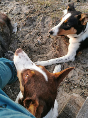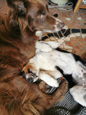 Little Ren is my keeper out of our first Border Collie litter (Cherusker Gioia X Clwyd Bob). I did like his movements when he was a puppy... but my pack decided to keep him and not one of the other lovely pups. Only he was alowed to play with Freddi or his mom Gioia. He is realy good behaving about the dogcommunication of our Aussie - Border Collie pack.